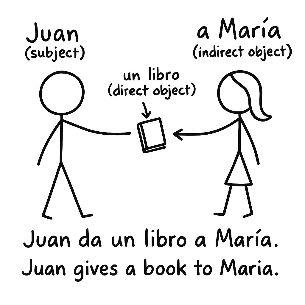 Juan da un libro a María. → Juan le da un libro.