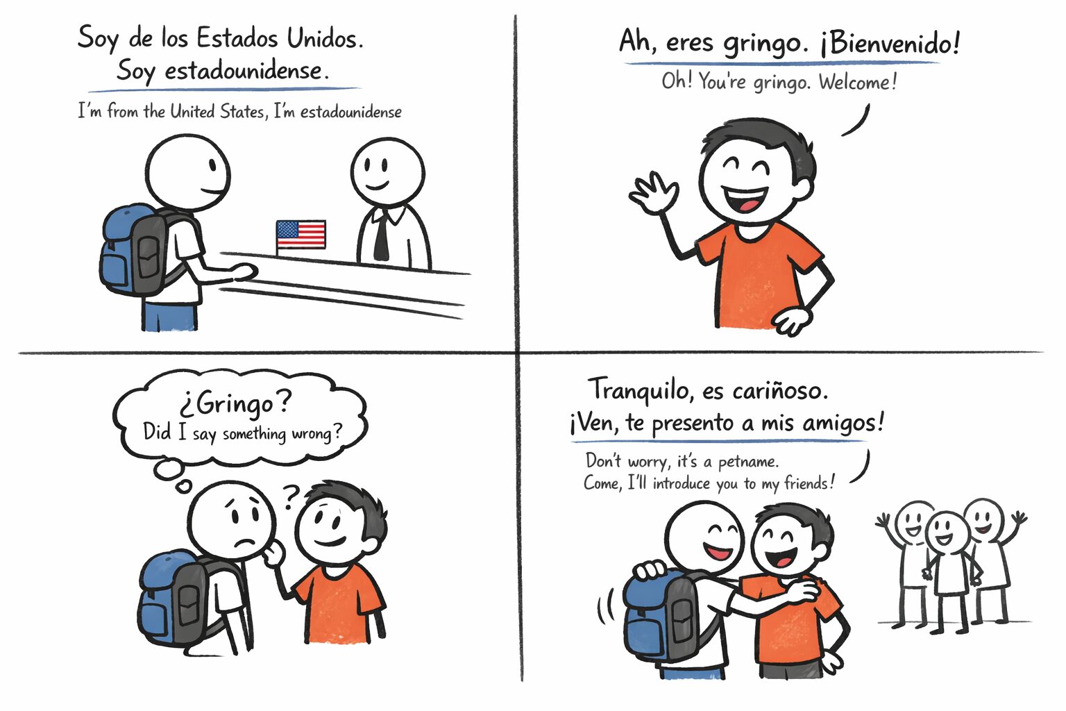 More infoLet’s be honest: trying to figure out how to say nationalities in Spanish can feel like a guessing game. Is someone from Estados Unidos called estadounidense, americano, or gringo? (Spoiler: it depends on who you ask and how much coffee they’ve had.)
