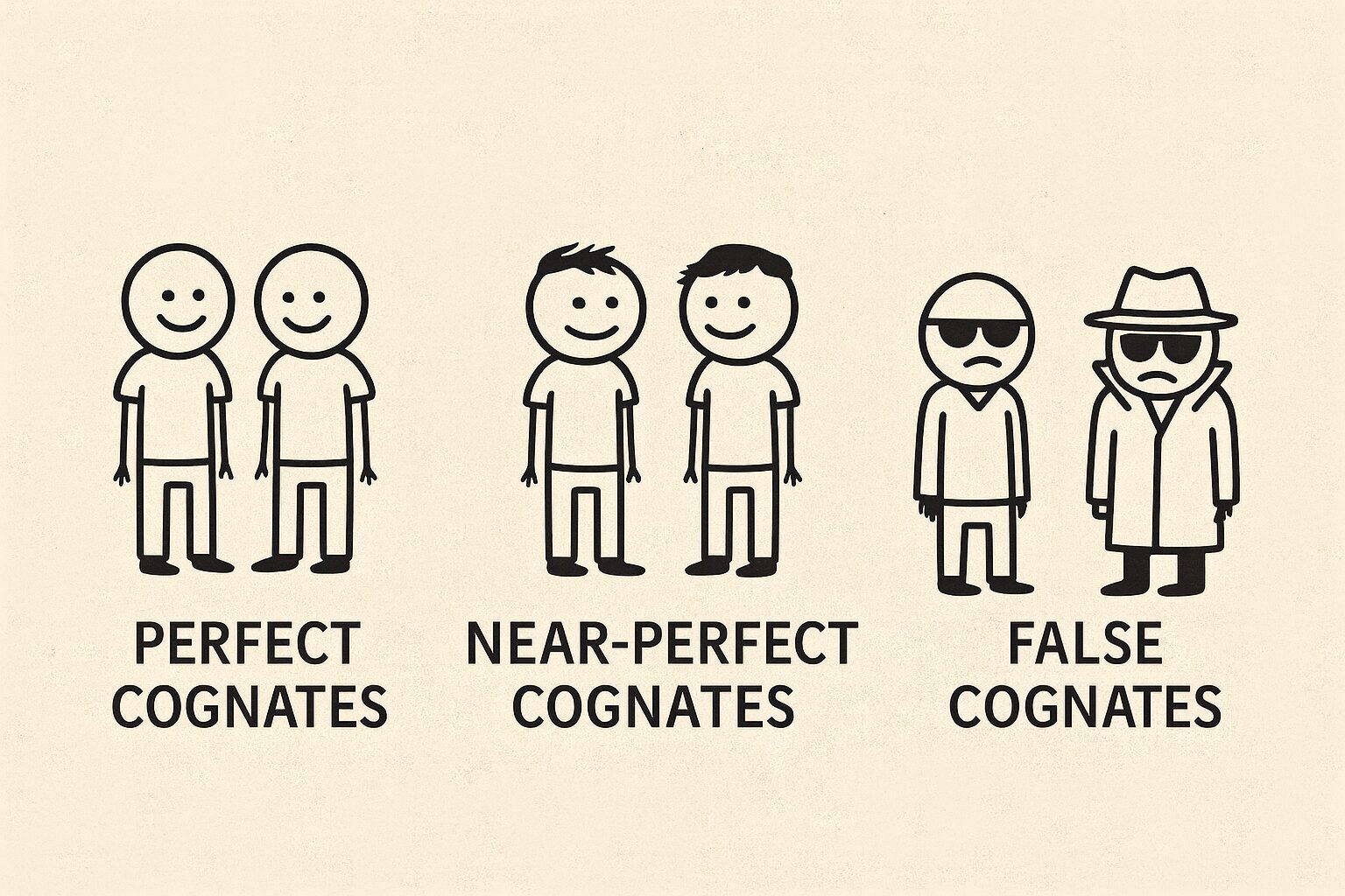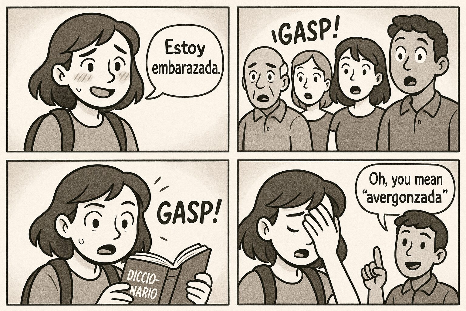 False cognates, also known as false friends, are words that appear similar in Spanish and English but don’t share the same meaning. False friends are the cognates that are most likely to cause confusion, often leading to awkward situations when used incorrectly.